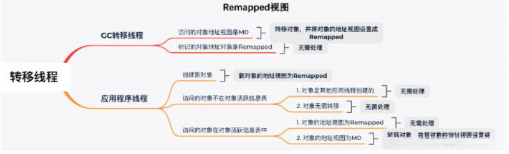 Remapped: 上次垃圾回收中的转移阶段涉及的目标对象或者是程序线程操作的目标对象,在当前次垃圾回收过程中被识别为非活跃对象。