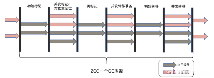 基于标记-复制机制的ZGC实现中,在标记阶段、转移阶段以及重新定位阶段之间实现了并行处理