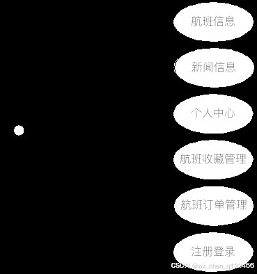 航班订票管理系统经过分析,确定了其需要设置用户的角色,其操作的功能通过用例图展示(见下图)。用户查询航班,收藏航班,购买机票,查看航班订单以及新闻信息。
