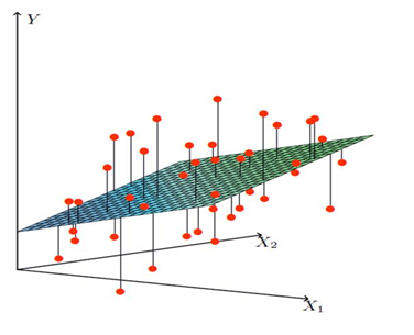 - 线性回归模型 :简言之,在样本空间中是一条直线或一个平面或更高维的超平面;我们的目标是以使预测值与实际观测值之间的差异最小化。 * 三维样本空间如图所示: