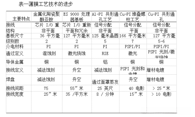 在本文中,我们探讨了IBM开发的一种多层薄膜技术方案,在计算机系统、电信设备、航空电子设备以及高性能计算领域均有应用。IBM已采用该方案在五种关键领域实现了高效布线。其中关键的技术要素包括:通过共烧法制备陶瓷基板;采用共形通孔结构;利用具有良好电阻特性的铜导体;选择性能优异的聚酰亚胺电介质(具有良好的介电特性);运用激光烧蚀或光敏聚酰亚胺光刻工艺精确定义通孔;最后通过附加电镀工艺进一步优化布线设计;并以端子金属定义为目标完成整个电路布局过程。