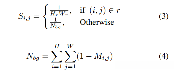 规模较大的目标由于拥有更多像素而导致其占据了更大的损失份额这将对小型目标的蒸馏过程产生不利影响在不同图像中 前景与背景的比例存在显著差异因此 为了实现对各类型目标的公平对待 我们决定设置比例掩码 S 使其能够均衡地平衡各类对象的损失程度