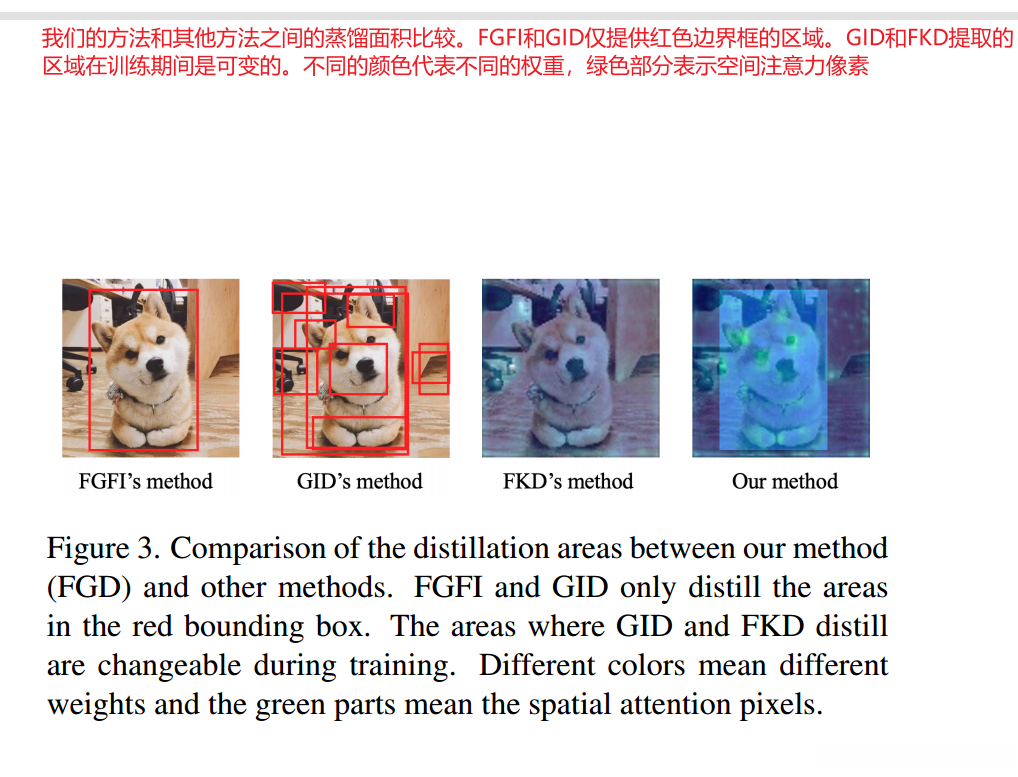 众所周知, 前景与背景之间的失衡是一个关键问题, 这种失衡的比例也会影响物体检测中蒸馏过程的效果. 针对此问题, chen 采用了一种加权策略以抑制背景的影响, mimick 则通过提取学生网络的区域建议网络所提出的有效的正样本区域. fgfi 和 tadf 分别采用了细粒度分析与高斯掩模的方法来选择适合进行蒸馏的区域. 进一步提取了前景与背景特征作为参考. 然而, 如何确定蒸馏的关键所在仍然不明朗.