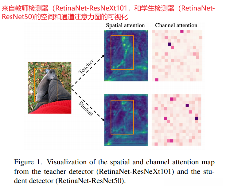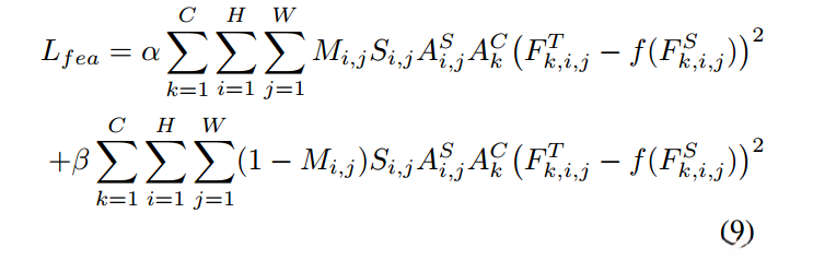 在分离前景与背景的过程中,在这一过程中又进一步计算了教师特征中各像素与不同通道的注意力权重设置;从而帮助学生聚焦于教师图像中的重要像素层及其通道
