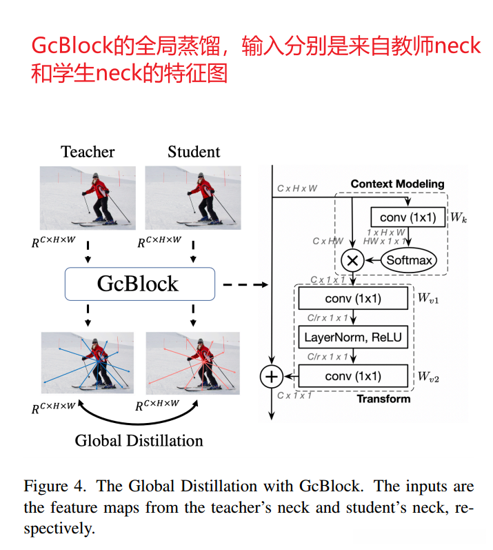 仅仅关注局部区域是不够深入的;因而,在局部蒸馏过程中,通过GcBlock解析像素间的相互作用。