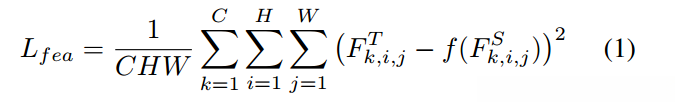 FPN 通常被用作许多探测器的中间层(neck),这些探测器提取自 backbone 的不同尺度特征图。将这些知识传授给学生成显著地提升了他们的学习效果。通常,在蒸馏过程中可以将其形式化为: