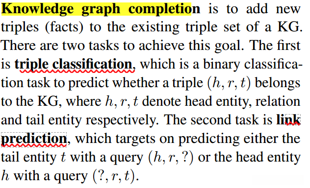 然而,在现有基于知识图谱(KG)的补全方法(Trouillon等人, 2016b;Das等人, 2018)中存在几个局限性(Fu等人, 2019)。首先,在很大程度上受到图密度的影响(Bordes等人, 2013),这些方法的效果显著受到图密度的影响。具体而言,在具有丰富结构信息的密集图上表现良好(Fu等人, 2019),但在实际应用中更为常见的稀疏图场景下则效果欠佳(Bodenreider, 2004)。其次,默认假设封闭世界的知识图谱不考虑外部资源中的大量开放知识(Fu等人, 2019)。实际上,在许多实际场景中(Bodenreider, 2004),KG往往与包含大量未提取事实的数据源关联起来。为了应对这些挑战(Fu等人, 2019),我们聚焦于开放型知识图谱补全任务( open knowledge graph completion task),其中KG能够通过引用外部新事实进行构建。近期基于文本丰富的解决方案(Fu et al ., 2019)倾向于利用预先定义的事实库来丰富知识图谱。然而这些预先定义的事实库通常具有噪声和限制性(Fu et al ., 2019),即无法提供足够的信息来进行有效的知识更新