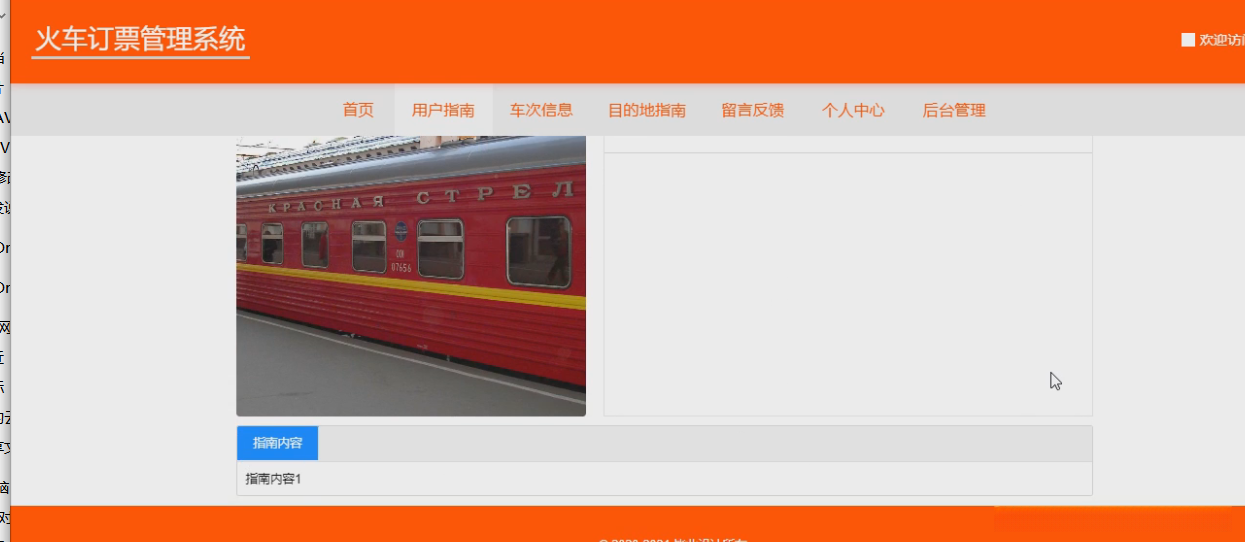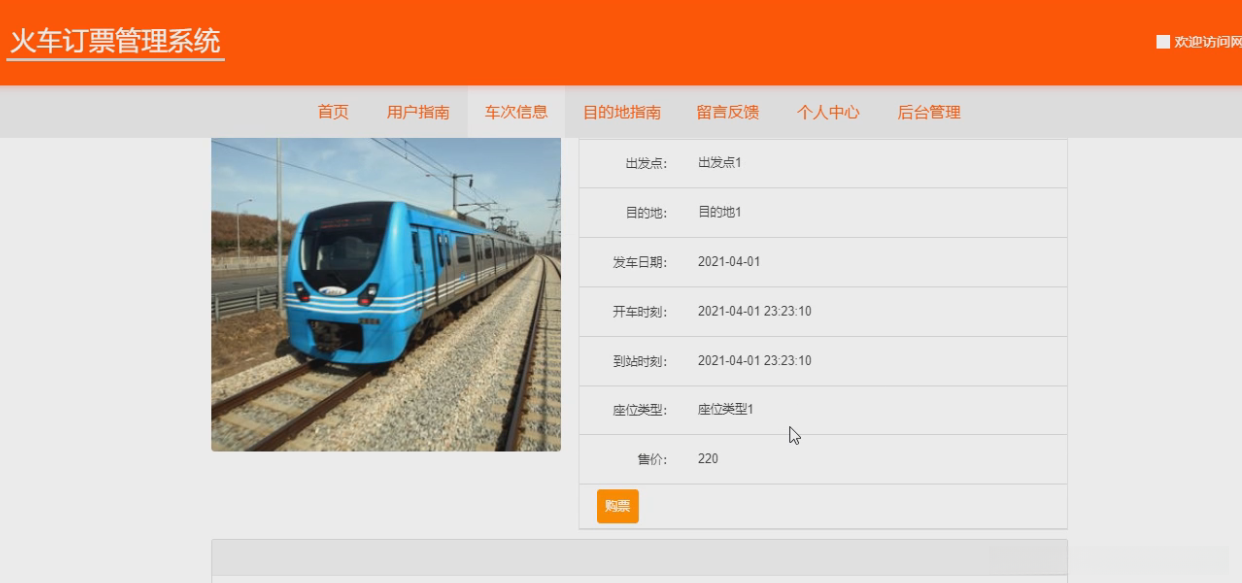 The train booking management system under study employs a current popular B / S architecture, leveraging Java technology and MySQL database for its development and design. This system grants users varying levels of access, including both regular users and administrators. For administrators, the available functions are: home page, personal center, user management, user guide management, seat type management, seat information management, ticket purchasing information management, refund information management, destination guide management, message board management, administrator management, and system-wide operations. Regular users have access to: home page, personal center, ticket purchasing information management, refund information management, and front-page views. Additionally available functions include home page views for updates on travel information; user guides for navigation instructions; ticket booking details; destination guidance; customer feedback mechanisms; personal center tracking; background monitoring; and other auxiliary services. Extensive testing has confirmed the system's stable performance with an easy-to-use interface that is both fast and efficient. It offers comprehensive functionality while maintaining high security standards and demonstrates excellent scalability and maintainability for the train booking management system