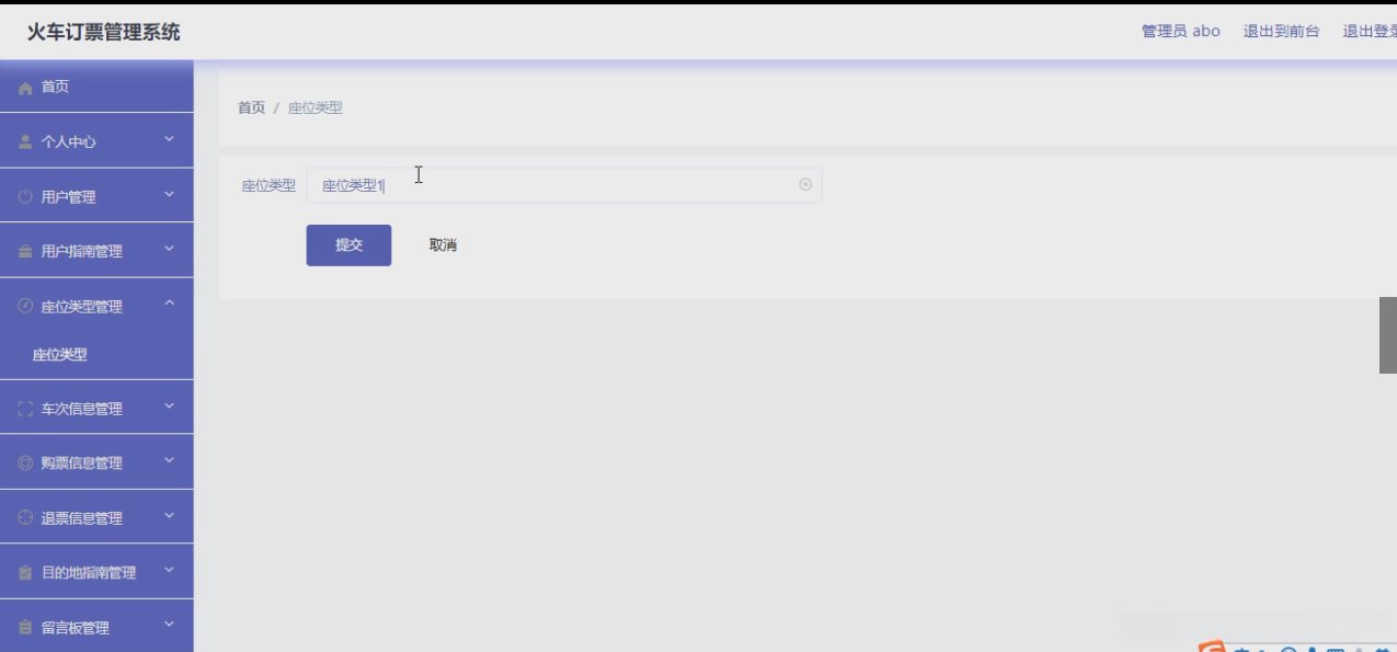 本文研究的火车订票管理系统采用当前流行的B/S架构模式,并基于Java技术和MySQL数据库实现开发设计过程。系统为不同级别的用户提供了多样的登录权限功能配置:对于管理员而言可访问:首页、个人中心、用户管理等模块;而普通用户则主要集中在:首页、个人中心及购票信息管理等功能区域。具体来说,在后台管理中包含:管理员登录界面、系统设置参数调整等核心模块;同时前端界面则主要提供:个人信息管理、订单查询与支付等功能选项。经过全面测试后显示该系统运行稳定且操作便捷高效;其核心优势在于集成了完整的功能体系并具备良好的扩展性和维护性特点;最终形成的是一款安全可靠且实用性强的现代火车订票管理系统。