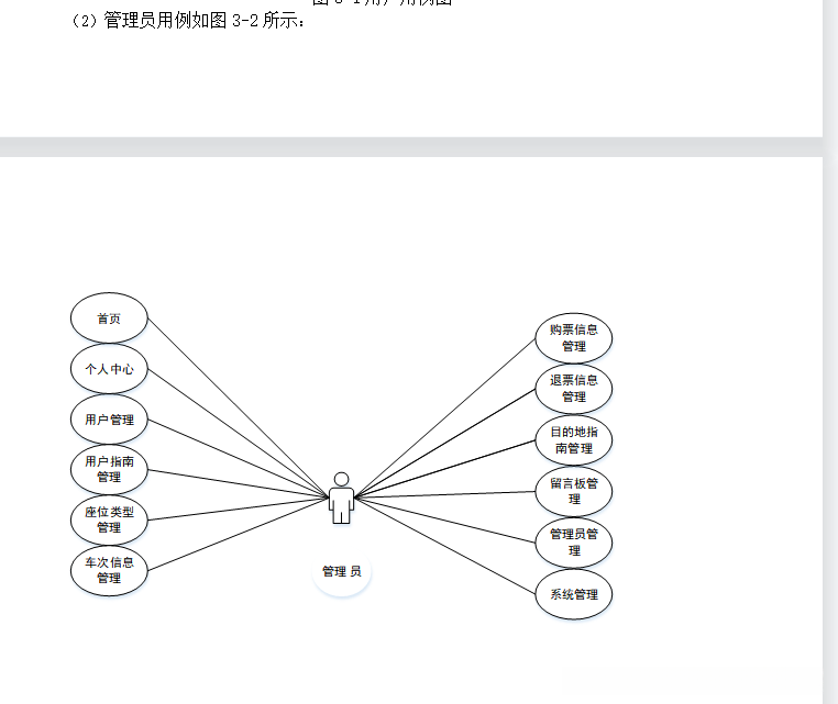 本课题要求开发一个火车订票管理系统。该系统需具备以下功能:管理员端包含首页(homepage)、个人空间(personal area)、用户注册与登录模块(user registration and login module)、用户指南数据库(user guide database)、票务类型设置(seat type configuration)、列车信息维护(train information management)、订单处理记录维护(order processing record maintenance)及交易记录追踪(transaction record tracking)。而用户端则仅提供首页(homepage)及个人空间(personal area)等功能。