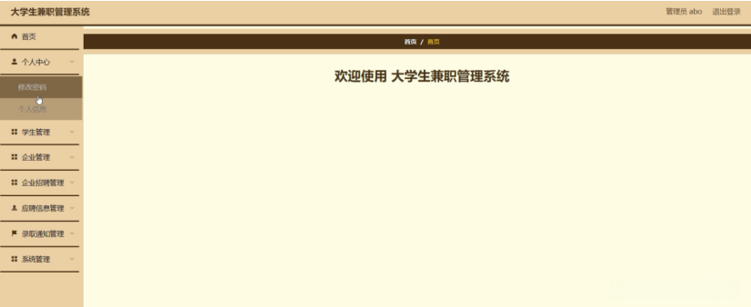 本课题要求实现一套大学生兼职管理系统,系统主要包括(管理员,学生和企业)三个模块等功能。