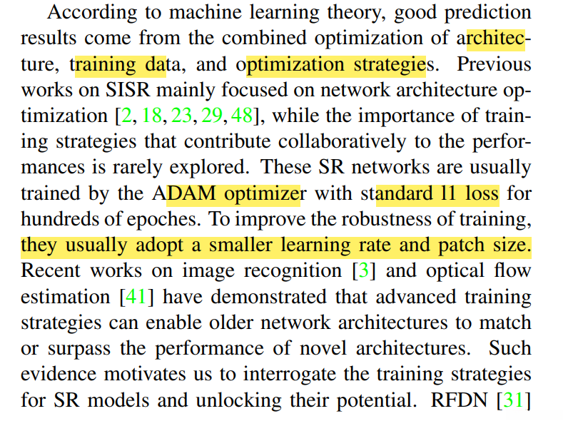 上面介绍了模型的性能受三个方面的影响:结构,数据,优化策略。以前的工作大多关注于模型的结构,忽视了优化策略的影响。最近,一些其他方面的研究证明了用先进的训练策略去训练一个旧的网络可能会有更好的效果。
