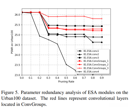 这里没有看懂。这里作者通过one-shot structured pruning算法分析了ESA模块的冗余性。