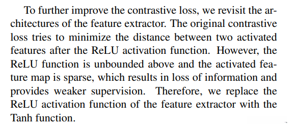 作者在这一部分提出了改进对抗损失的原因。因为原始的对抗损失是比较在ReLU激活函数之后的特征,作者认为这将导致信息的丢失。因为ReLU激活之后将导致特征稀疏,所以作者使用tanh激活函数代替。作者在这里说,一个好的网络结构随机初始化后也可以提取足够的感知细节。