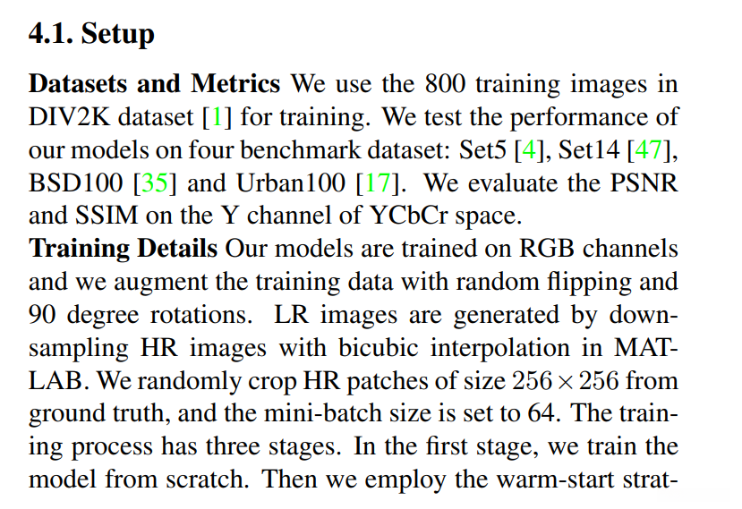 作者发现,特征提取器中间特征的选取对模型的性能影响很大。作者做了对中间特征进行全面的研究得出结论从浅层提取的特征有更好的细节和纹理。基于这,作者改进了特征提取器,这可以有效的提取边缘和细节。为了加速模型的收敛,作者提出了多阶段热启动策略。具体来说,就是在每个阶段,SR模型可以得到所有前面阶段的预训练权重。