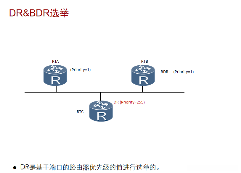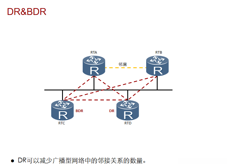 所有拥有两个或多个路由器的广播式网络以及NBMA网络都配备了一个DR以及一个BDR