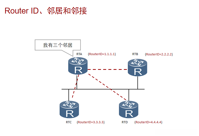 OSPF路由器之间必须传递链路状态数据以及路由数据,在传递这些数据之前路由器之间首先要创建邻接关系。 邻居(Neighbor):