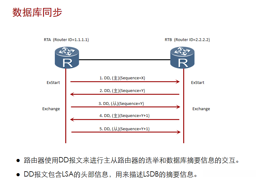 DD报文:当两台路由器进行LSDB数据库同步操作时,