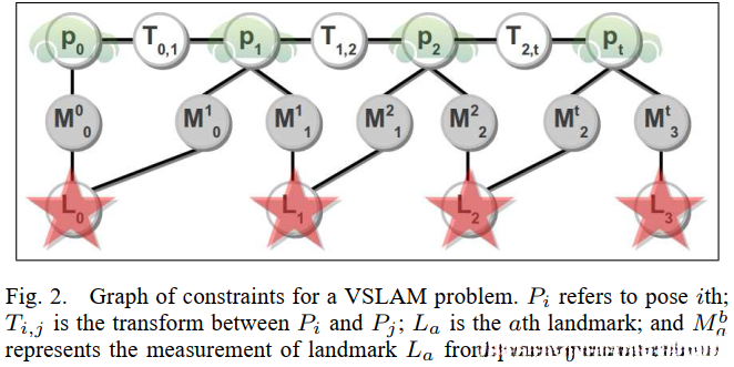 - 从该位置可见的位置标物 landmark 被加入图中,并与其相关的 pose 相关联。