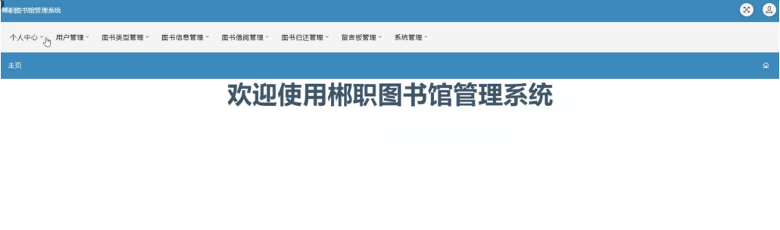 用户通过登录方式进入郴职图书管理系统后可执行各项操作包括主页面、个人中心以及图书借阅与归还管理模块等功能