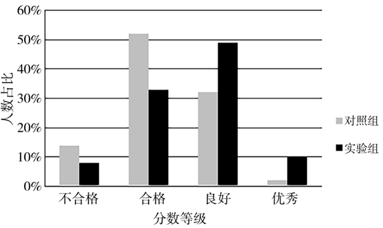 图****2****实验班和对照班各等级人数占比