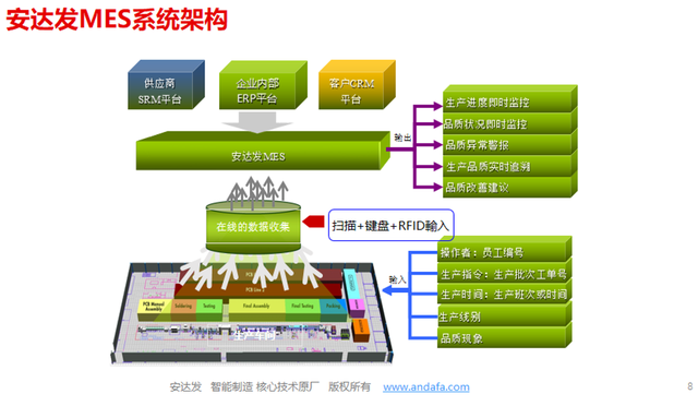 用户可以通过安达发MES系统实现对各设备当前运行状态的数据监控,并获取关键参数的趋势分析及即时告警信息。管理者可从数据库服务器端获取实时监测数据以辅助决策。调度室内配备的大屏与工控机采用动态显示技术呈现设备运行状况,并提供异常设备警示功能。该系统不仅具备全面的数据检索能力,还能收集生产过程中的各项指标及产品质量相关信息以支持精准分析与优化管理。
