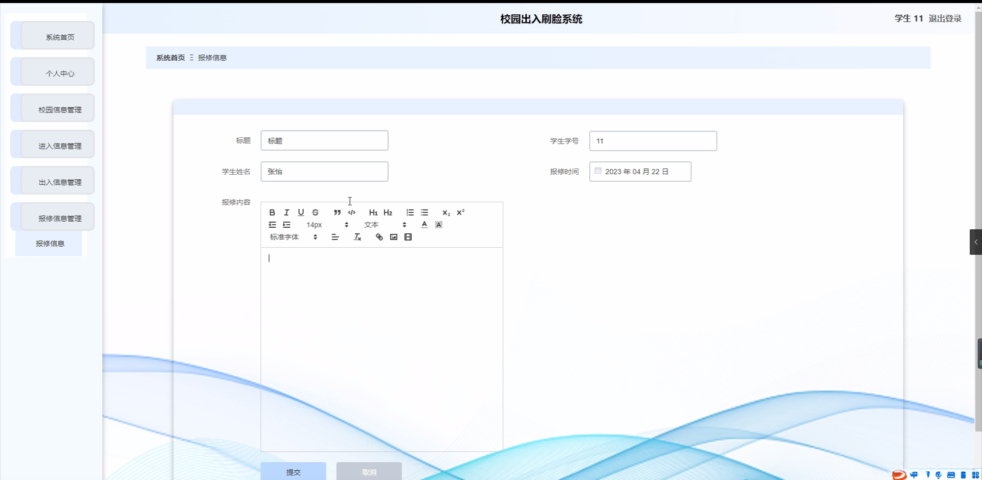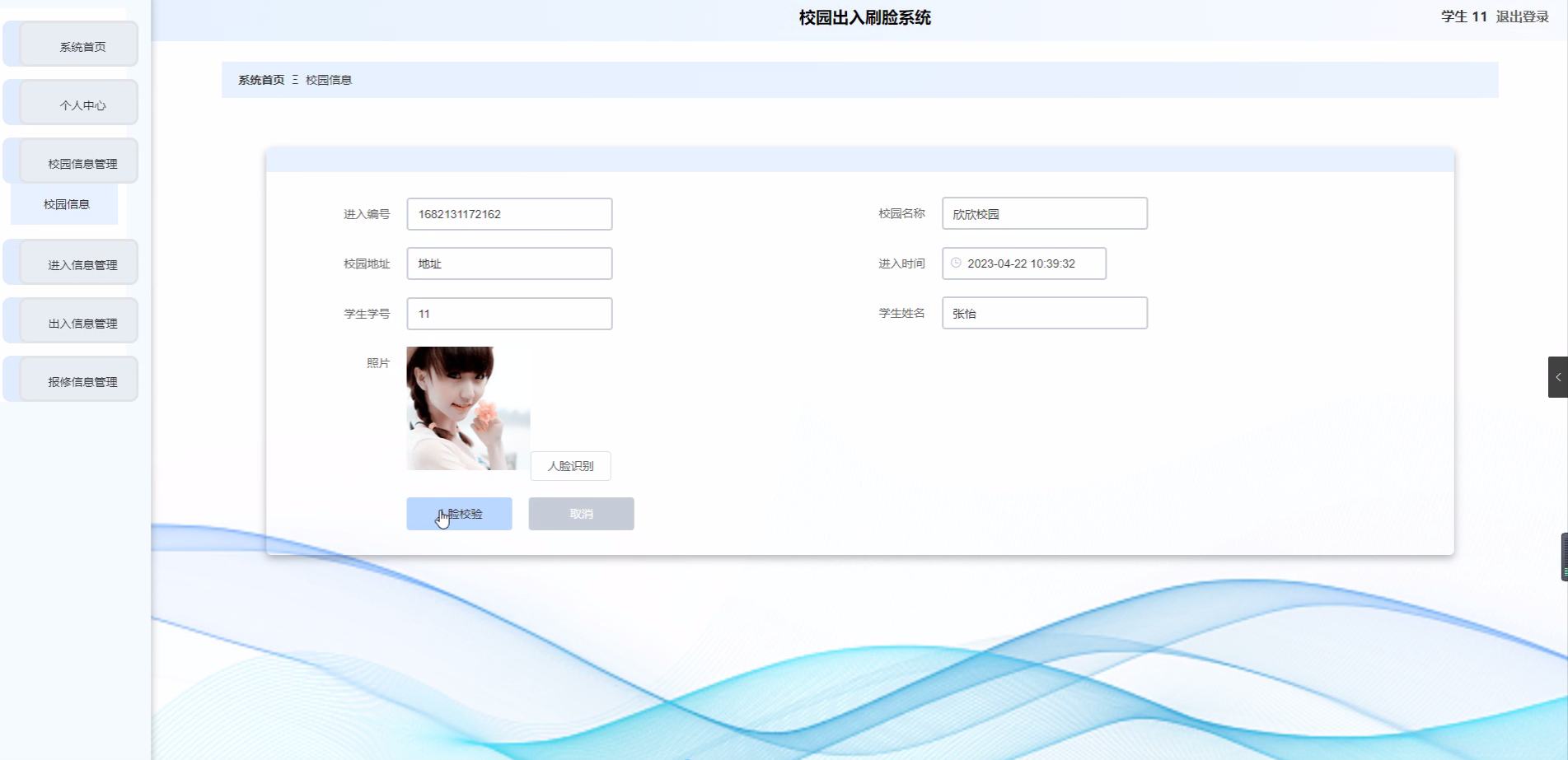 本研究的核心目标在于设计并实现一套完整的校园出入刷脸系统。主要涉及学生身份验证、校园位置定位、进出记录管理和问题反馈等功能;其后需构建系统的总体架构并优化其用户界面以提升用户体验;最后经过多方面的测试与性能优化确保系统稳定可靠地服务于实际需求