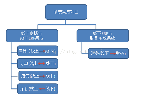 该企业门户项目的工作内容主要包括:线上商城à线下ERP、线下ERPà线上商城、线下ERPà财务系统,涉及的系统包括:线上商城、ESB数据转换(商品、订单、店铺、库存)、线下ERP、财务系统。