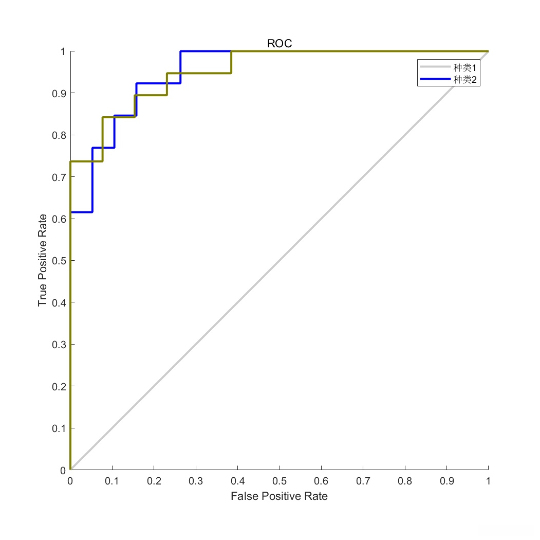 %第 1 类表示癌症患者,第 2 类表示非癌症患者。
