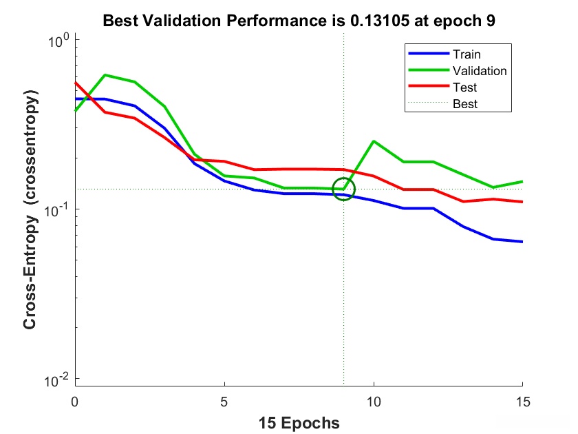 %样本自动分为训练集、验证集和测试集。训练集用于对网络进行训练。只要网络针对验证集持续改进,训练就会继续。测试集提供独立的网络准确度测量。
