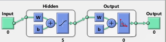 说明:创建并训练具有 5 个隐藏层神经元的单隐藏层前馈神经网络。