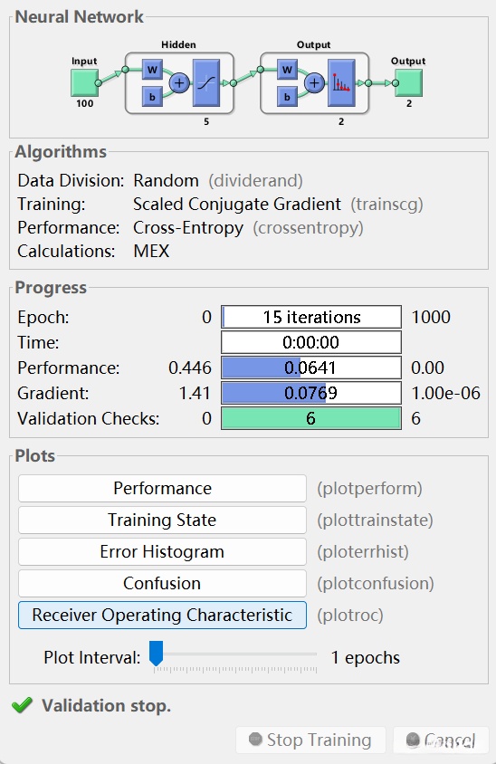 说明:样本自动分为训练集、验证集和测试集。训练集用于对网络进行训练。只要网络针对验证集持续改进,训练就会继续。测试集提供独立的网络准确度测量。