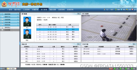 所有营区内的门禁设备被整合至统一管理系统中,并实现了人员进出权限自动审核以及出入记录数据库的建立。重点区域(如办公楼及弹药库)配备了自动监控设施,在发生未经授权访问时会触发报警装置,并确保监控画面实时采集并完整存储。对于未经授权访问者出现的情况,请立即联系值班室工作人员进行核实与处理