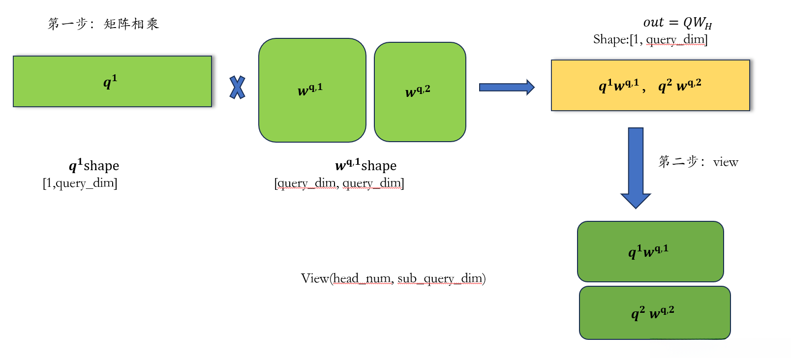 以 Query张量为例: 实现的时候先乘以Head 矩阵