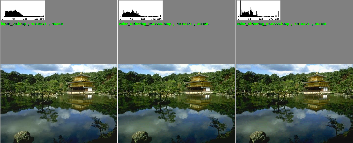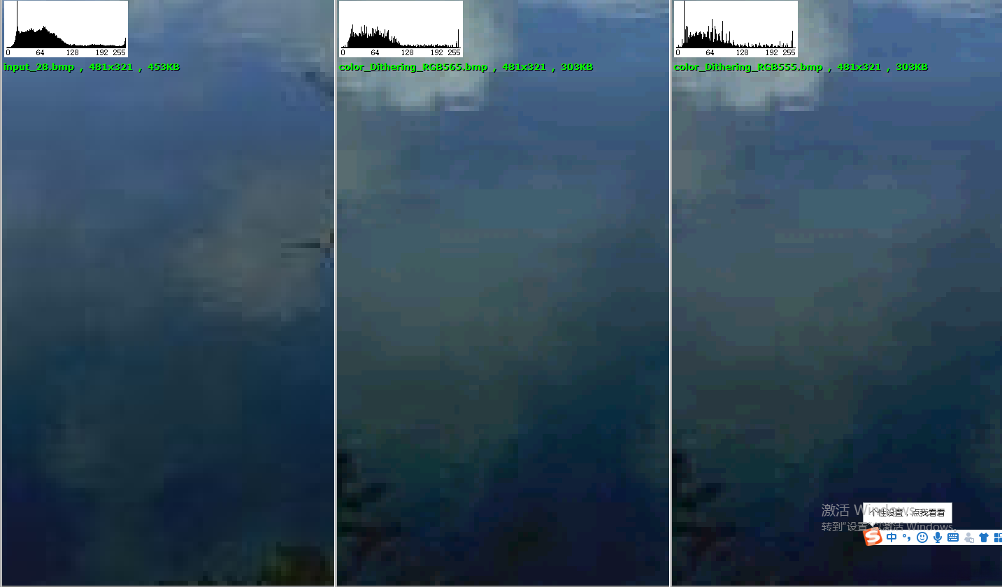 整体图像,左到右分别是RGB888、RGB555、RGB565