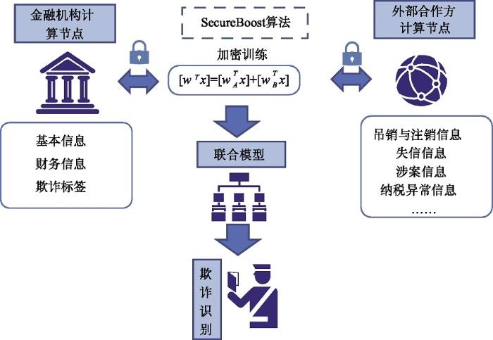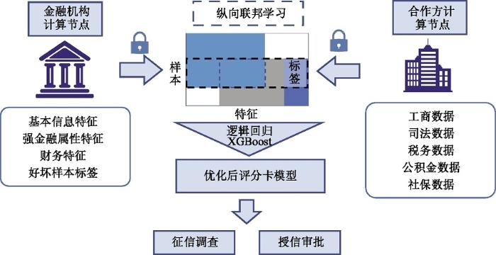 目前金融机构正在与地方政府大数据中心建立合作关系,并综合运用企业基础档案资料(如注册信息)、吊销或注销记录"三失"信息、“三 old 人”背景、“三史 记录等维度的数据资源开展研究工作。在此基础上采用联邦学习框架下的集成树Secureboost算法进行自适应训练,并动态优化集成10至20棵决策树模型