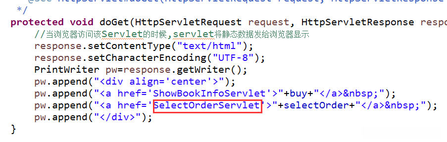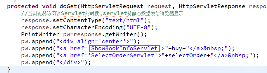 pw.append("<td><a href='BuyBookServlet?index="+i+"'><input type='button' "
