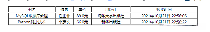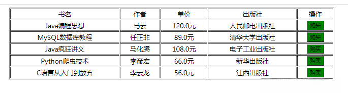 其运行后,点击购买图书即课跳转至图书信息列表页面,效果如下: