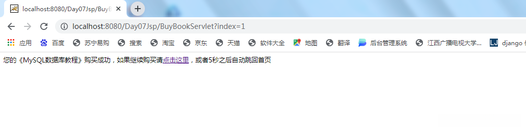 + "如果继续购买请<a href='ShowBookInfoServlet'>点击这里</a>,"