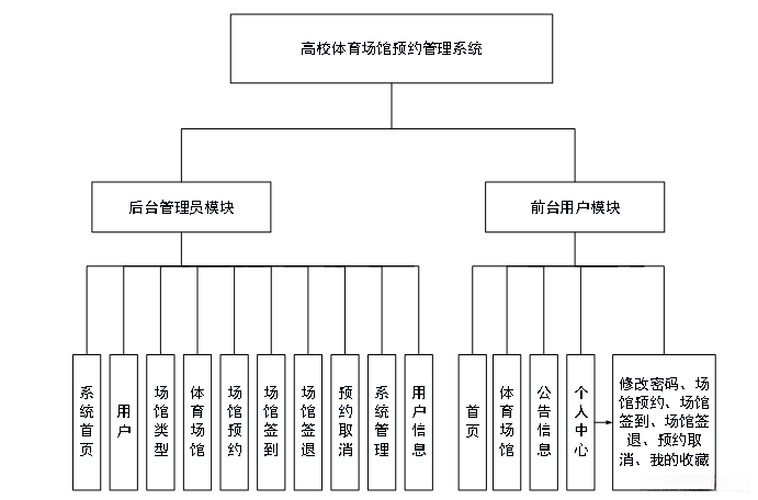 该章节的功能模块设计,只是大概描述了系统的所有功能模块,将功能按权限来讲解。系统总体结构图如图4-1所示。