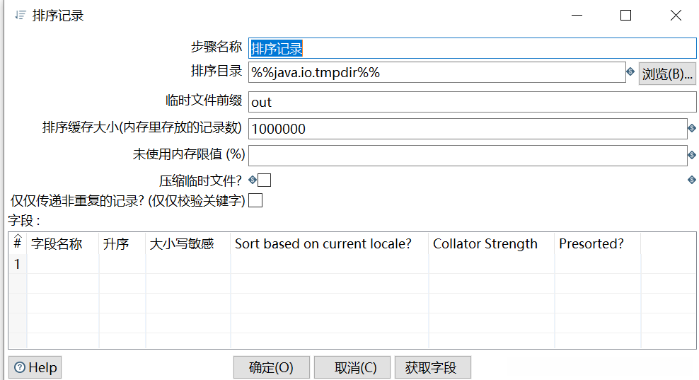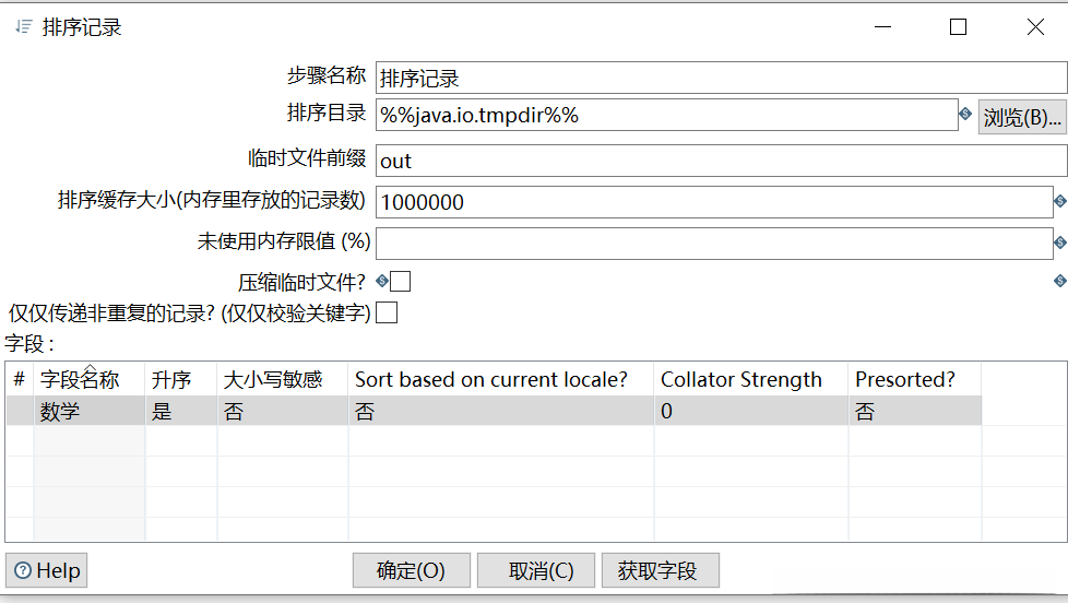 双击【排序记录】组件,弹出【排序记录】对话框,如图所示。