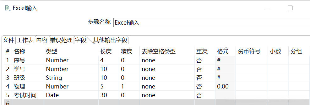获取字段。单击【获取头部数据的字段…】按钮,添加字段到【字段】表中设置字段参数,如图所示。