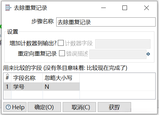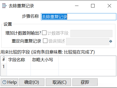 双击【去除重复记录】组件,弹出【去除重复记录】对话框,如图所示。