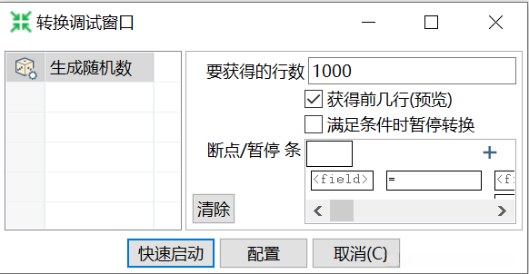 在【生成随机数】转换工程中,单击【生成随机数】组件,再单击工作区上方的