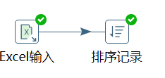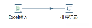 在【排序记录】转换工程中,单击【核心对象】选项卡,展开【转换】对象,选中【排序记录】组件,并拖曳至右边工作区中。由【Excel输入】组件指向【排序记录】组件,建立节点连接,如图所示。