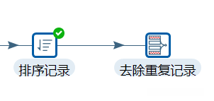 在【去除重复记录】转换工程中,单击【核心对象】选项卡,展开【转换】对象,选中【去除重复记录】组件,并拖曳至右边工作区中,并由【排序记录】组件指向【去除重复记录】组件,建立节点连接,如图所示。