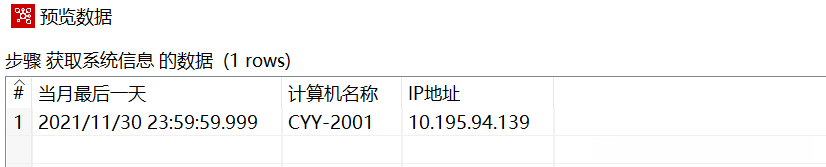 单击浏览记录】按钮,弹出【Enter preview size】对话框,预览记录数采用默认值,单击【确定】按钮。弹出【预览数据】对话框,展示获取系统信息的数据,如图所示。