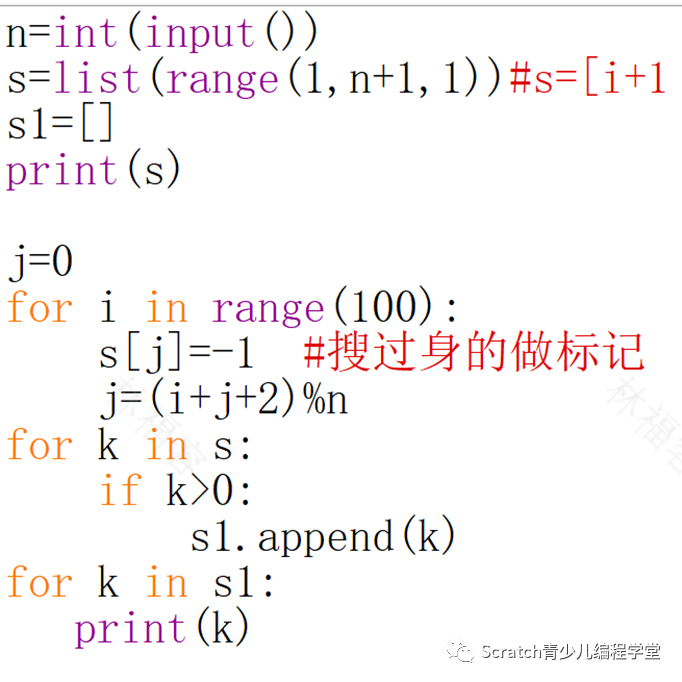 给定任意整数n(5 ≤ n ≤ 20),该值表示渔民的总数。我们需要列出未被搜查的渔民编号