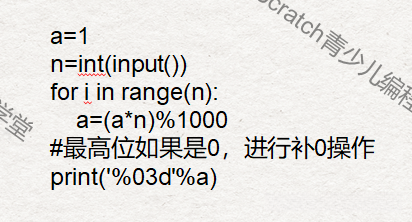 计算n的n次方(即连续n个n相乘)之后,最后的3位数字是多少