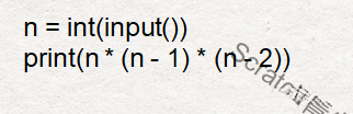 小明家中收藏了丰富多样的趣味读物。这些书各有特色,在众多藏书爱好者中独树一帜。共有三名好友每人可借阅一本(同一本书不可同时借给两人)。为了满足他们的阅读需求,请根据输入的书籍数量n(其中n的取值范围为3到100),计算从所有书籍中选取三本并分配给这三人共有多少种不同的组合方式。输入说明: